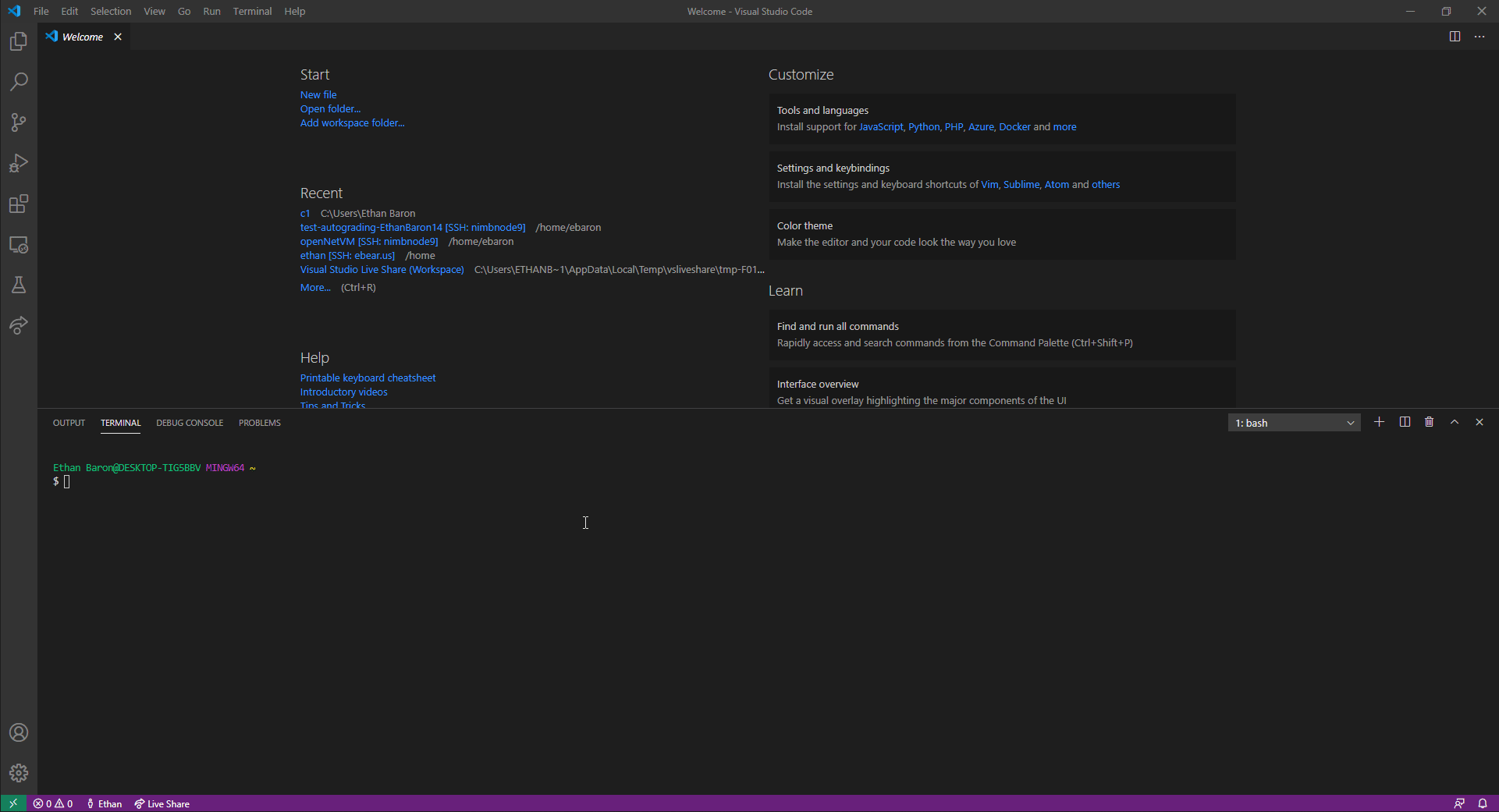 - The Visual Studio Code window should reload and the bottom bar should change color from purple to blue. You should also see the repository files appear in the “Explorer” tab on the left-hand side of Visual Studio Code