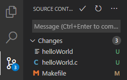 In addition to Shell integration, Visual Studio Code automatically tracks the changes you make to files when you’re in a GitHub repository folder. Note that the feature set of this GUI is limited in that it doesn’t support many of the advanced options that Git supports, but it essentially executes the respective Git commands for the operations you might want to perform “internally”, meaning it writes out and executes the command for you. The advantage of this is that you can visualize the operations you are performing and seamlessly pick up where you left off with Git in the command-line at any time if it gets too complicated. This section walks you through staging, committing and pushing changes to your repository with the Visual Studio Code GUI.